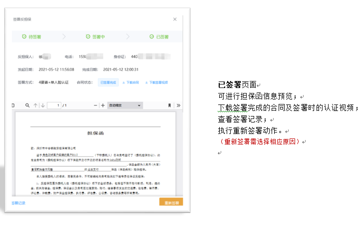 3. 反担保人接收信息并进行签署