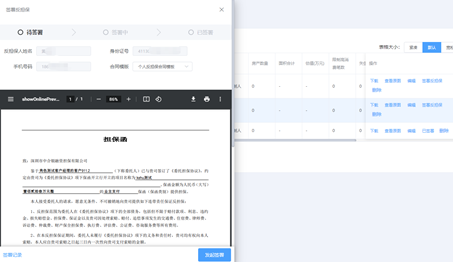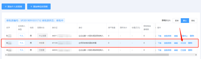 按钮,进入到反担保人列表页面,查看对应的反担保人担保函的签署情况。可通过签署状态快速识别当前记录的签署阶段。