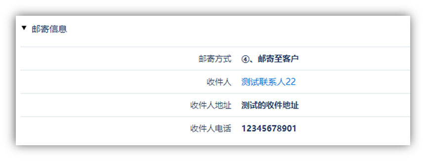 3).选择后将自动带出该联系人对应的收件地址及电话,若发现地址或电话有误:
