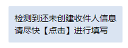 通过【新建】按钮添加收件人信息,也可以通过点击页面上的【提示标志】添加,如下图