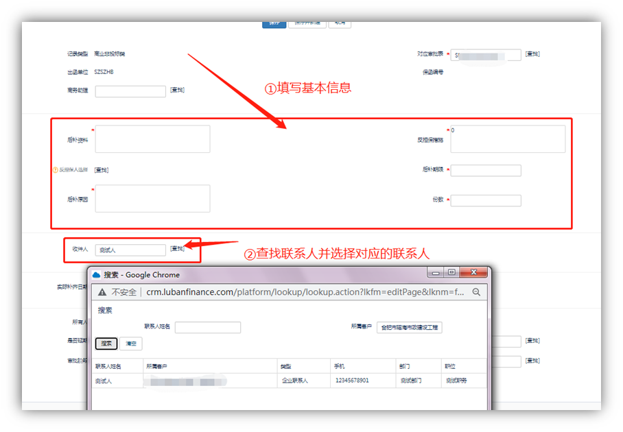 ②在收件人这里查找重新选择正确的联系人记录,若无则可新建联系人;(适用于需更换联系人的情况)