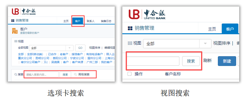 (对象查询中的搜索又分为选项卡搜索、视图搜索)