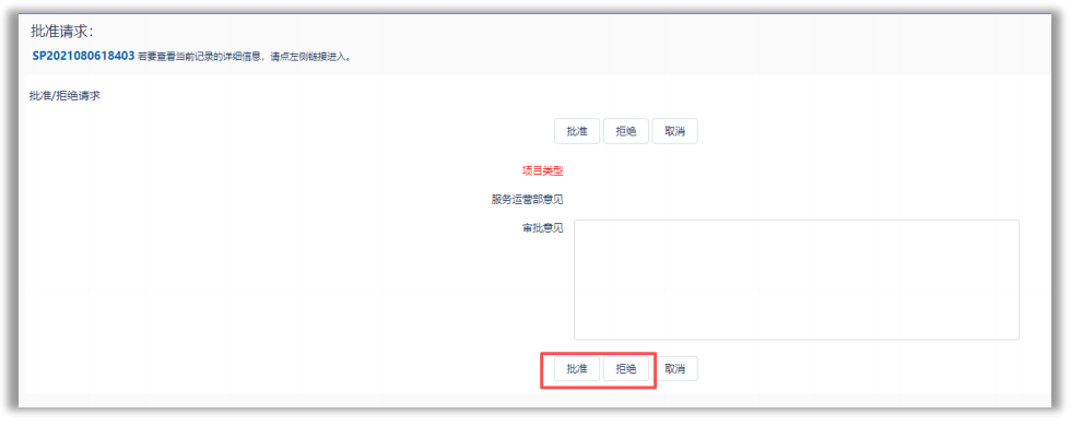 点击操作中的进行审批,可直接对该条记录进行批准或拒绝操作,如下图
