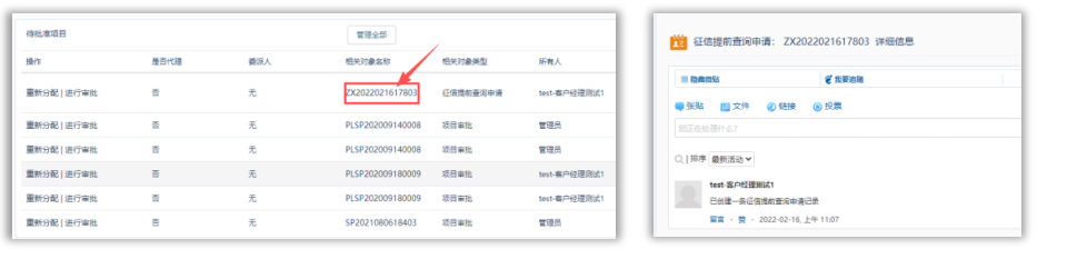点击相关对象名称中的编号可直接打开该条记录,如下图