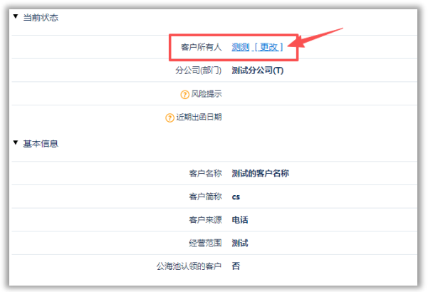 在客户所有人处点击更改