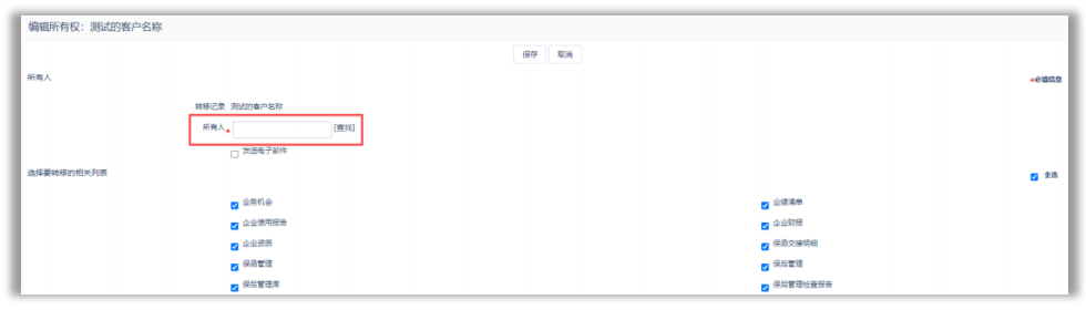 选择转移分配后的所有人及关联对象记录(当关联记录中所有人跟当前客户所有人一致时生效)