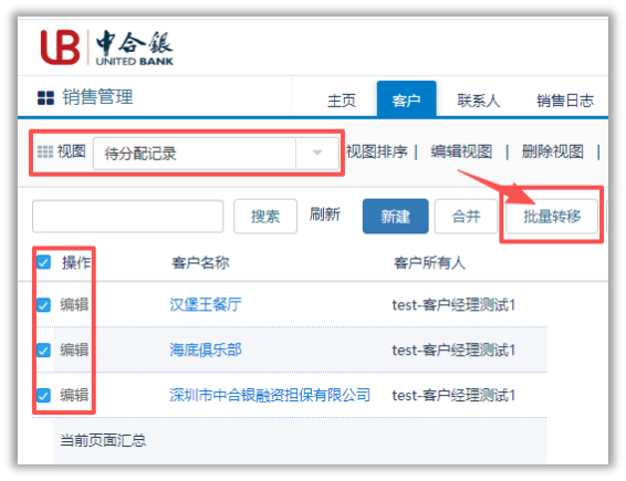 通过视图筛选要分配的记录并勾选