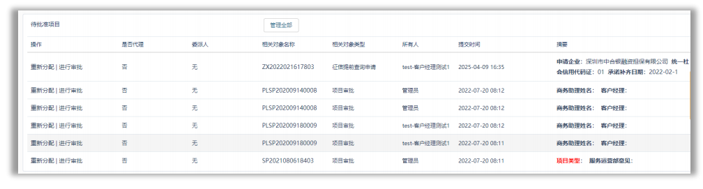 待审批的项目中通过勾选多条记录,可进行批量操作。
